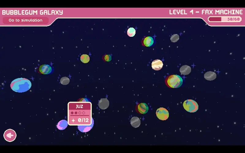 Bubblegum Galaxy est un jeu de construction narratif et cosy signé par les créateurs de Teacup. Après la suppression mystérieuse de la galaxie Bubblegum, vous la reconstruisez en concevant des planètes colorées, tuile par tuile. Accomplissez des missions ingénieuses, maîtrisez des règles uniques et visez le score parfait. Entre deux projets, explorez le bureau, rencontrez vos collègues excentriques et découvrez la vérité derrière le crash du serveur interdimensionnel.