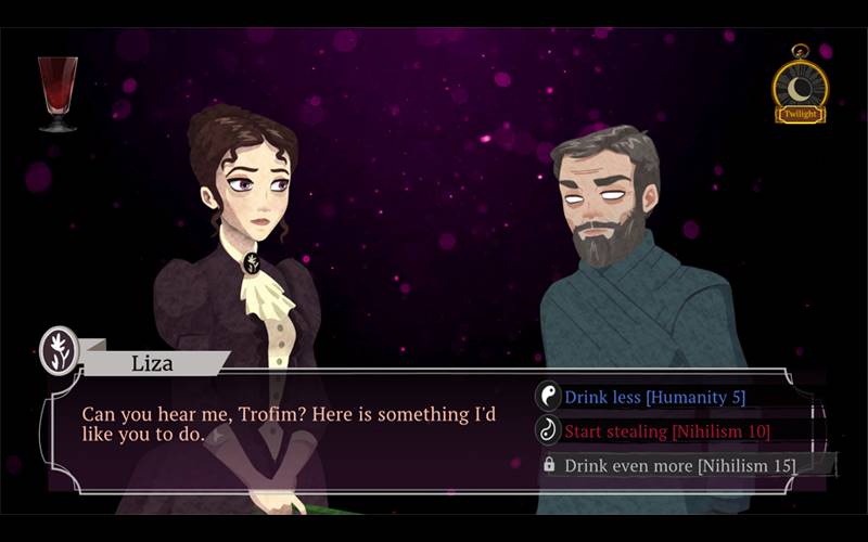 Dans ce roman graphique, vos actions auront des conséquences, vous devez donc faire attention à ce que vous faites. Cabernet vous confronte à des choix difficiles, où vous devez choisir d'embrasser votre nature de vampire ou de rester humain. Visuellement impressionnant, ce titre a l'air d'être un excellent jeu de « pointer et cliquer ».