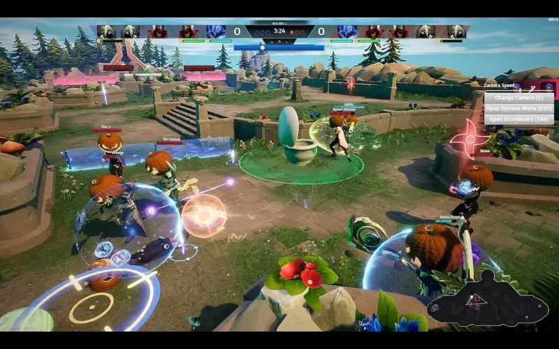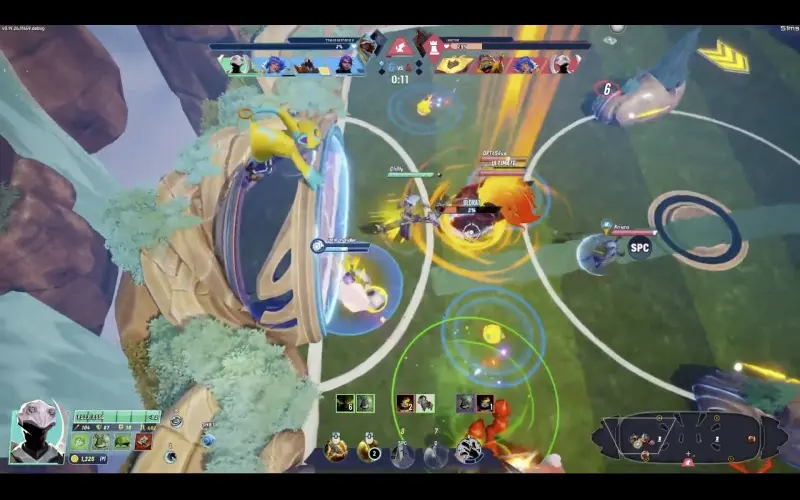 Un match sauvage démarre alors que deux équipes s’affrontent, jonglant entre combats féroces et chaos de buts marqués. Ce mélange compétitif associe des capacités inspirées des MOBA à des mécaniques de balle basées sur la physique. Un instant vous préparez le tir parfait, l’instant d’après vous esquivez les attaques ennemies pour protéger votre avance.