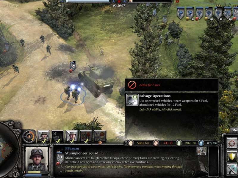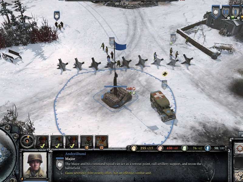 Chaque type d’unité contrôlable, infanterie comme véhicule, possède un coût de construction et un temps de recrutement associés, ainsi qu’une gamme d’aptitudes au combat. Les véhicules et l’infanterie peuvent finalement être améliorés par l’achat de capacités spécifiques. Les améliorations augmentent généralement l’efficacité de l’unité.