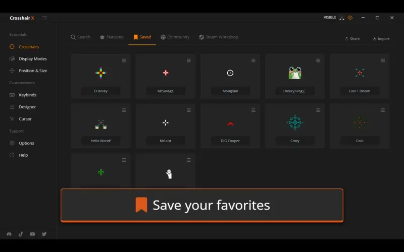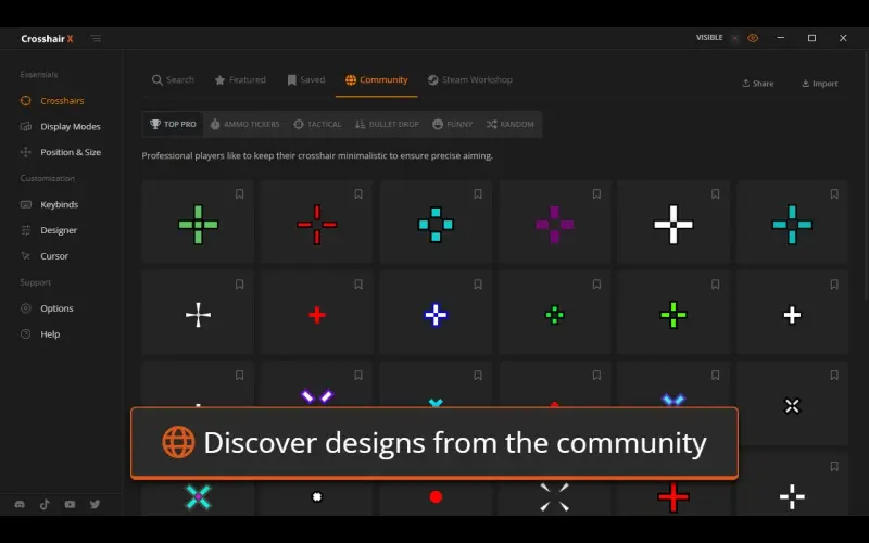 Personnalisez votre expérience de tir avec un réticule sur mesure, choisissez parmi les designs professionnels ou créez le vôtre. Améliorez votre précision dans tous les jeux grâce à des superpositions réglables qui vous aident à réussir tous vos tirs.