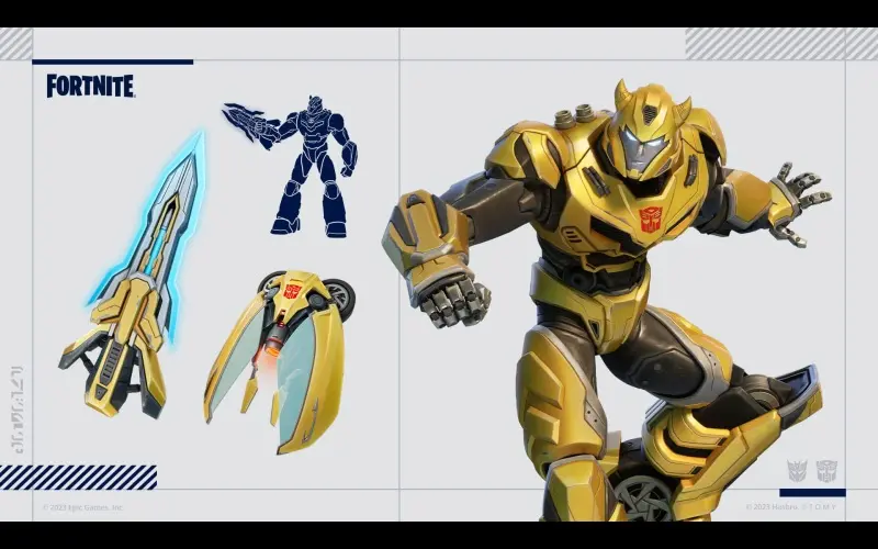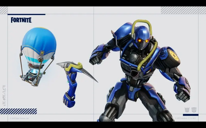 Le pack Fortnite Transformers contient trois objets cosmétiques issus de la franchise Transformers. Il comprend 3 tenues, 3 accessoires de dos, 3 pioches, 2 emotes et 1 000 V-Bucks !