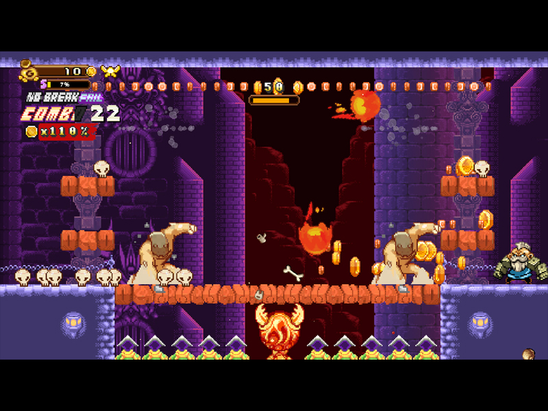 De l’or, des mercenaires, des monstres. Golden Force offre les trois ! Golden Force est un nouveau jeu d’action-plateforme de style rétro. Atteignez les cieux et faites une grande fortune sur votre chemin. Chaque niveau vous demande d’être plus agressif. Attrapez des objets à collectionner et des objets à lancer qui vous aideront dans la bataille. Nagez et combattez sous l’eau et réduisez lentement en pièces le réseau d’ennemis mortels commandés par le Roi Démon. Après tout, vous êtes un mercenaire et vous devez vaincre le Roi Démon. Votre mission, si vous l’acceptez, est d’affronter votre destin !