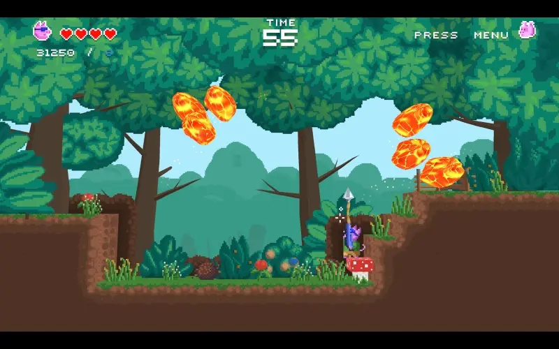 Piggly Pagly Boom est un jeu d’arcade de plateforme et de réflexion développé par 9Ratones. Après une expérience scientifique qui a mal tourné, c’est à vous, Morgan Pigman, de sauver le monde des boules de feu sauvages. Abattez-les à l’aide d’un grappin spécial. Tirez le grappin vers le haut pour l’accrocher au plafond, où il restera brièvement, détruisant toutes les boules de feu qui toucheront la corde suspendue.