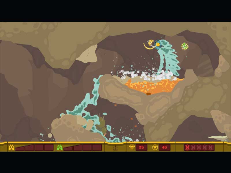 Embarqué dans un vaisseau, vous allez devoir explorer des niveaux sous-terrains et y retrouver des survivants. Dans PixelJunk Shooter vous évoluez avec les éléments du décors (lave, eau, terre, rochers) pour parvenir à vos fins.