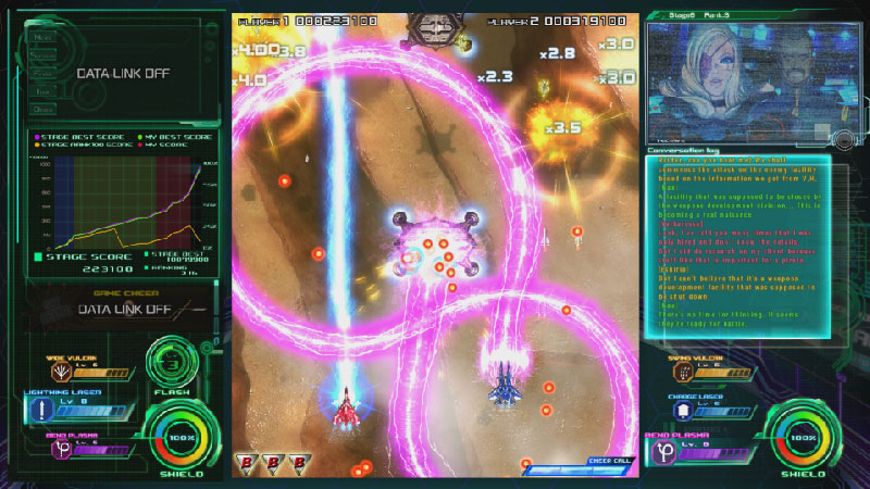 On vous propose de choisir parmi trois vaisseaux distincts, chacun avec des défenses, une mobilité et des systèmes d’armes différents. Jouez avec un ou deux joueurs hors ligne. Certaines améliorations incluent des barres de vie pour le système de dégât des vaisseaux. Une nouvelle « Cheer Attack » a également été introduite pour booster les systèmes d’armes de votre vaisseau pendant un temps limité seulement. Des voix d’acteurs ont aussi été ajoutées au jeu.