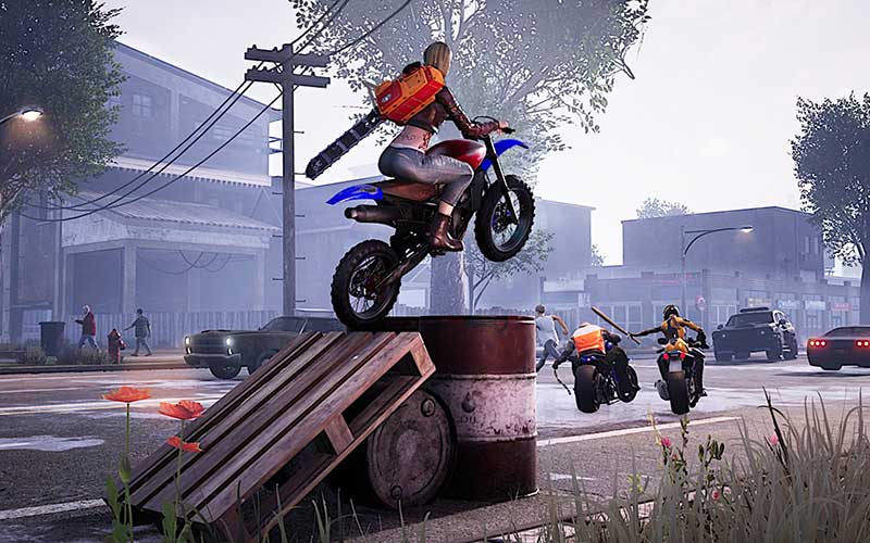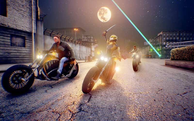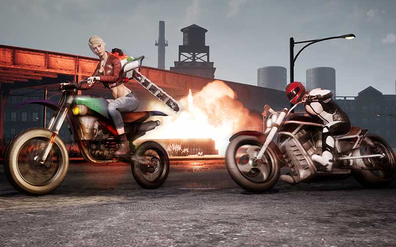 Pendant la course, vous et les autres joueurs êtes armés d’armes de corps-à-corps. Le combat a lieu en moto tout en conduisant. Les joueurs peuvent simultanément accélérer et combattre d’autres coureurs avec des armes telles que des crosses de hockey, des couteaux, des haches et des battes de baseball.