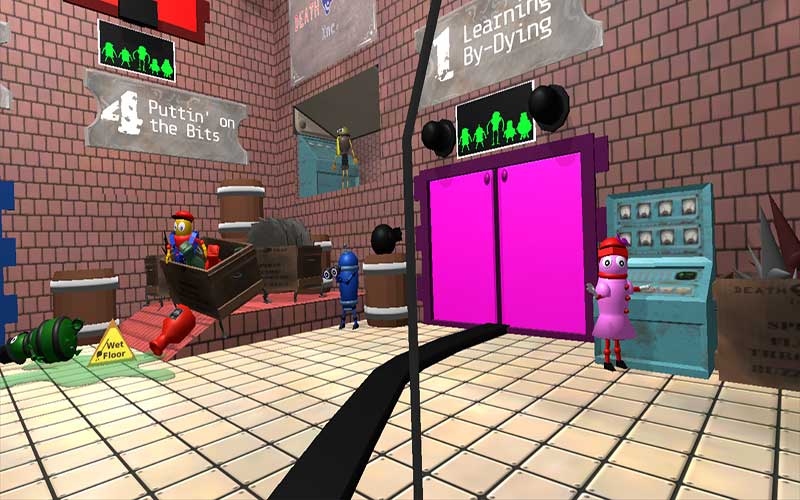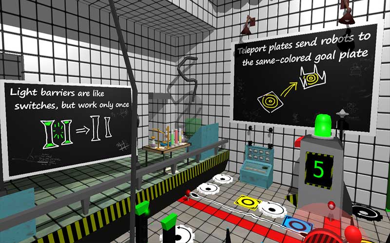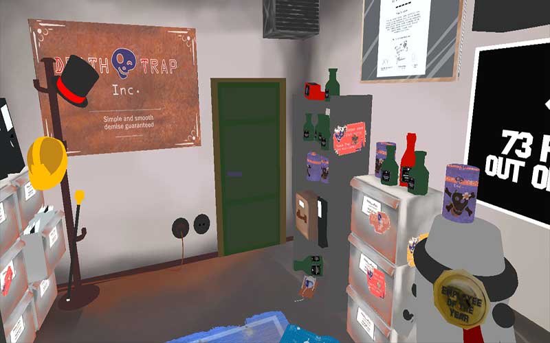 RoboTraps est le job de vos rêves ! Ici à Death Trap Inc., vous superviserez la production de vos plus rentables produits comme des clôtures électriques, des lance-flammes, des scies circulaires et beaucoup d’autres. Votre bureau est une plateforme mobile placée sur un monorail d’où vous pouvez tout observer d’un point de vue avantageux. Vous travaillerez aussi avec cinq autres robots nommés Alice, Bob, Clark, Denis, et Ernest. Vous devez surveiller attentivement ces cinq-là car ils manipulent des machines dangereuses. Vous ne voudriez pas de morts dans le bureau sous votre contrôle. Faites correctement votre travail et grimpez l’échelle hiérarchique tout en gagnant des récompenses comme des mugs ou des figurines pour votre table de bureau.