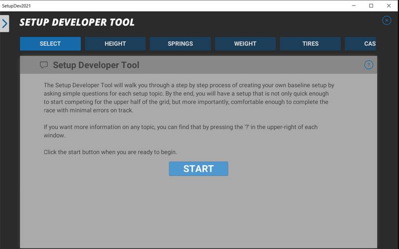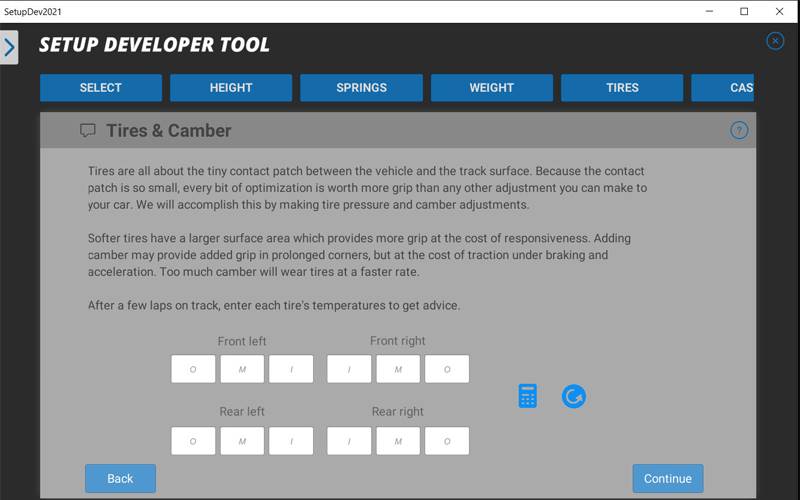 Configurer une voiture de course vous semble compliqué? Setup Developer Tool 2021 est là pour vous! Cet outil pas à pas vous guide dans la création de votre setup en vous posant des questions simples sur le comportement de votre voiture. Répondez, ajustez et affinez jusqu’à obtenir le setup parfait pour votre style de conduite!