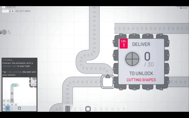 Le DLC Puzzles transforme shapez en un nouveau mode où vous créez des formes données avec un espace, des outils et des couleurs limités.