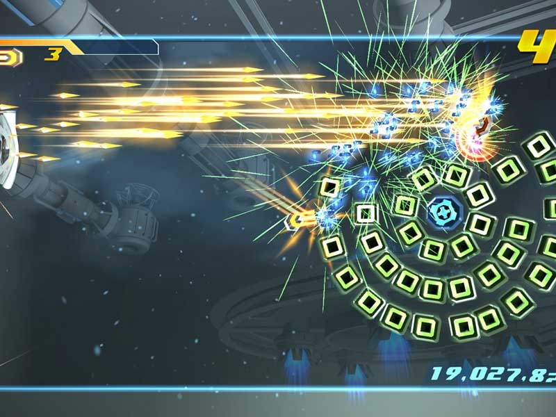 Une inspiration Shoot’em Up se cache indéniablement derrière les niveaux très bien pensés de Shatter. Les mécaniques du casse brique classique sont pourtant bien présentes: une balle, une palette, des briques et la panoplie des bonus, extra-balles, vies en plus etc.