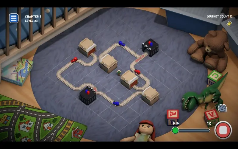 Teeny Tiny Trains est un jeu de puzzle sur le thème des jouets développé par Short Circuit Studios. Construisez des voies pour guider des trains miniatures à travers des défis faciles à relever, traversez des environnements nostalgiques tels que des salons, des forts construits avec des canapés, des greniers et des couvertures de pique-nique, tous conçus avec amour sous forme de dioramas confortables remplis de charme nostalgique.
