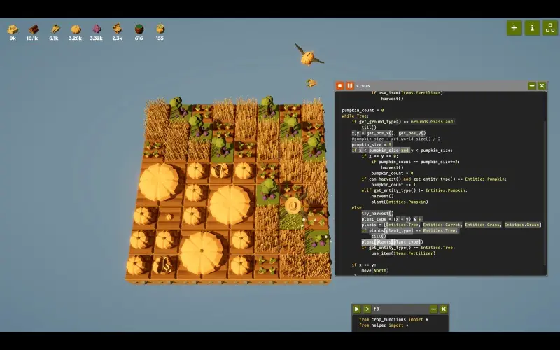 Le travail d’un fermier est désormais confié à un drone intelligent que vous programmez vous-même. Utilisez un langage simple, proche de Python, pour automatiser toutes les tâches agricoles. Rassemblez des ressources, améliorez votre technologie et regardez votre code transformer le labeur en automatisation fluide.