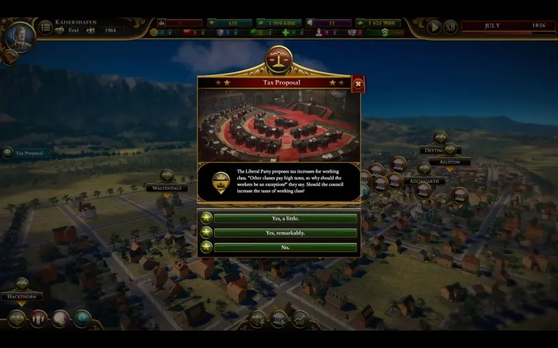 L’héritage de votre famille commence avec la fondation d’une modeste colonie destinée à devenir une grande ville. Au fil des générations, vous construirez des quartiers, gérerez les infrastructures et façonnerez la vie des citoyens à travers vos choix politiques. Harmonisez les aspirations de votre équipe avec vos objectifs personnels!