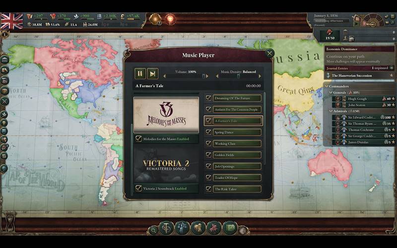 Melodies for the Masses est un pack de musique DLC pour Victoria 3 développé par Paradox Development Studio. Bienvenue à l’ère de l’industrialisation, lorsque des millions de travailleurs pastoraux se sont déplacés vers les usines, une époque où le centre du potentiel national s’est déplacé de la campagne vers les villes. Ce pack de musique en particulier est inspiré par la nostalgie romantique de ces jours plus simples de travail à la terre, honorant les luttes quotidiennes et les ambitions des gens ordinaires.