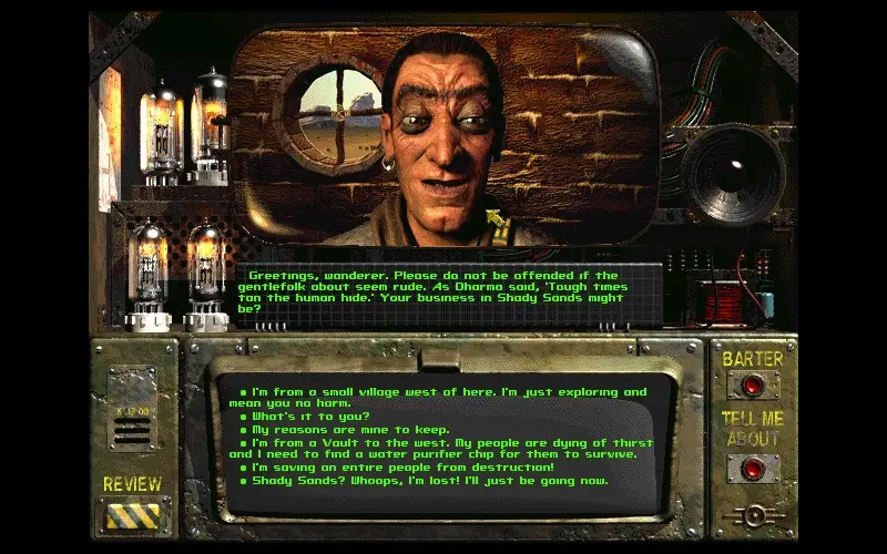 En 2077, une guerre nucléaire mondiale a mis fin à la civilisation moderne. Environ cent ans plus tard, vous quittez pour la première fois votre abri souterrain, appelé un Vault. Vous devez parcourir la terre vide et en ruines au-dessus pour trouver une pièce capable de réparer le système d’eau défectueux de votre Vault.