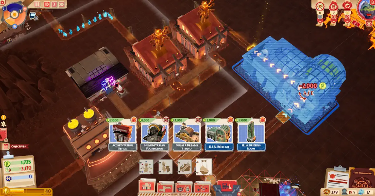 Gérer Hell Incorporated implique de construire des installations complexes de traitement des péchés et de diriger une équipe de travailleurs sarcastiques et exigeants appelés Imploés. Vous devez assurer le suivi administratif, approuver les augmentations et gérer des grèves actives si votre style de direction laisse à désirer.